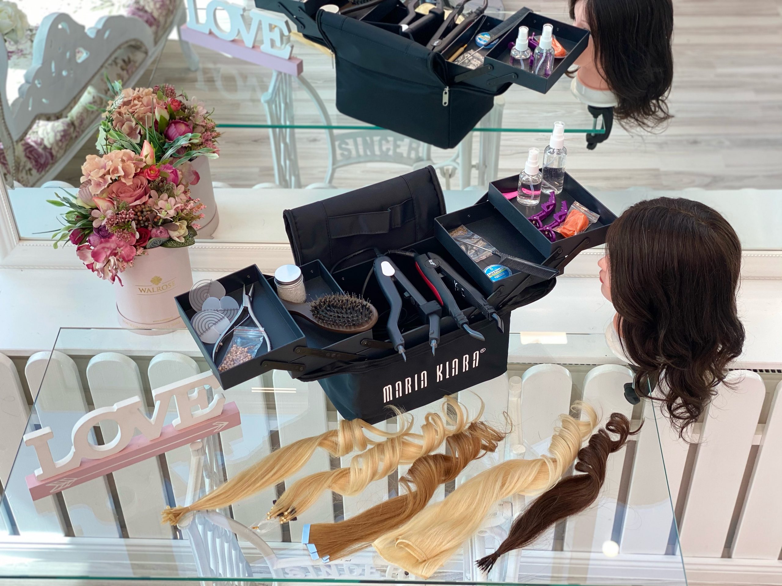 Primești toate uneltele de care ai nevoie ca specialist în montare extensii de păr, inclusiv extensii pentru practică.